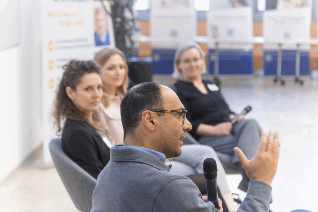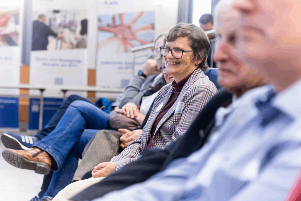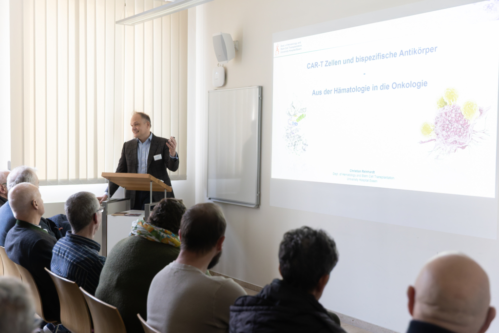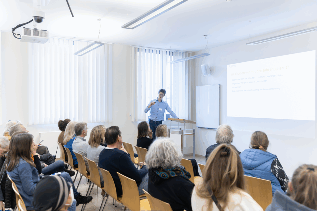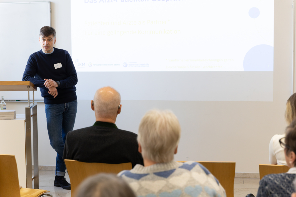Die Keynotes beleuchteten neueste wissenschaftliche Fortschritte: Prof. Dr. Christian Reinhardt nahm das Publikum mit auf eine Reise durch das Immunsystem und seine Rolle in der Krebsbekämpfung, während Prof. Dr. Beate Timmermann und Prof. Dr. Felix Nensa zeigten, wie künstliche Intelligenz in der Strahlentherapie heute schon präzisere Diagnostik und Therapien ermöglicht – beides bot den Besucher*innen spannende Einblicke. Ergänzt wurden diese von zahlreichen Workshops, die von Brustkrebs über Prostatakrebs bis hin zu Lungenkrebs und Hirntumoren viele Krebserkrankungen abdeckten und darüber hinaus Sessions zu allgemeinen Themen wie Patientenbeteiligung, Psychoonkologie, Bewegung & Ernährung, Wund- und Stoma-Management und Familie & Zugehörige boten.