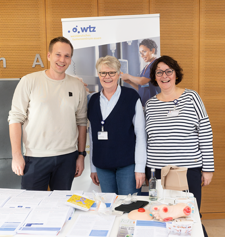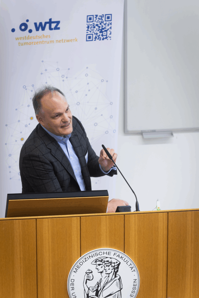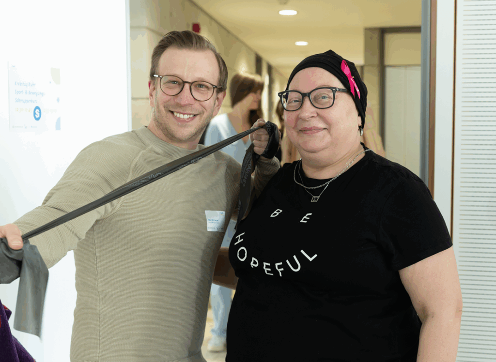 Abschließend fand ein Talk mit Prof. Dr. Dr. Alpaslan Tasdogan, Leiter des Instituts für Tumor-Metabolismus, PD Dr. Miriam Götte, Leiterin der Sport- und Bewegungstherapie an der Universitätsmedizin Essen, und Kristina Hardt, Leiterin des Peer-Mentoring-Projekts OncoPartner im WTZ, statt, der den Fokus auf Selbstwirksamkeit, Aufräumen von Mythen, die Wichtigkeit von Selbsthilfe und Austausch, sowie Sport und Ernährung bei Krebs legte. Teilnehmende hatten die Möglichkeit, Fragen zu stellen und praktische Tipps für den Alltag mitzunehmen.