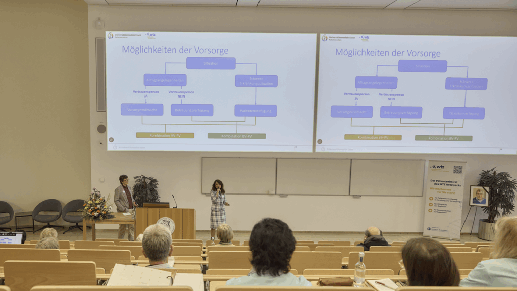 Am Samstag, 17. Januar 2026, versammelten sich rund 400 Teilnehmende aus der Region Ruhrgebiet im Lehr- und Lernzentrum am Campus der Universitätsmedizin Essen (UME) sowie digital über Zoom zum 8. Krebstag Ruhr. Inhaltlich gestaltet wurde die Veranstaltung vom WTZ-Patientenbeirat, organisiert und begleitet wurde sie von der WTZ-Geschäftsstelle. Die Moderation übernahm das Team der WTZ-Patientenbeteiligung.